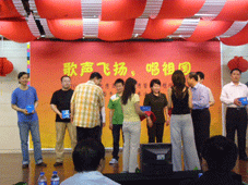 5月8日,均豪公司第一届卡拉OK大赛“歌声飞扬”决赛在京郊烟湖度假村结束,比赛共产生一等奖一名,二等奖两名,三等奖三名,优秀奖七名。 本次比赛由均豪公司工会举办,共有来自均豪公司各项目、外埠公司的15名选手参与最终角逐,邀请了北京均豪物业管理公司党总支书记李学忠先生、北京市乐音社艺术总监韩晓鹏先生和声乐专家、中央电视台“星光大道”评委田志强先生担任评委。 均豪员工在比赛中展现出来的风采得到了评委老师的一致好评,同时参赛选手也得到了评委老师现场指导,受益匪浅,进一步提升了信心。