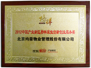 峰会最后由主办方搜狐焦点颁发了中国产业新居榜样——2012年度最佳创新创业服务奖,均豪物业等获此殊荣。