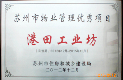 经过均豪苏州公司的悉心管理和积极准备,苏州建屋厂房物业管理团队的沟通协调和宏观指导,港田工业坊顺利通过了由苏州市住房和城乡建设局主管领导费元龙局长、物业处丁乔华、王利君处长、物业管理协会葛明秘书长、园区房管局张江处长等7人组成的检查小组对港田工业坊物业管理创优工作的全面检查验收。《港田工业坊》被成功授予2012年度苏州市物业管理优秀工业区称号。