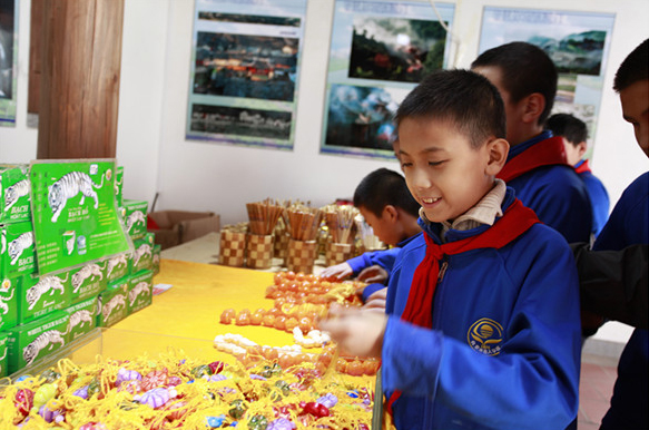 在讲解员生动的介绍中,孩子们一边认真聆听,一边仔细触摸展馆内的设施、陈列,用听觉和触觉想象着身边的日新月异,用心看园博,感受绿色新北京。