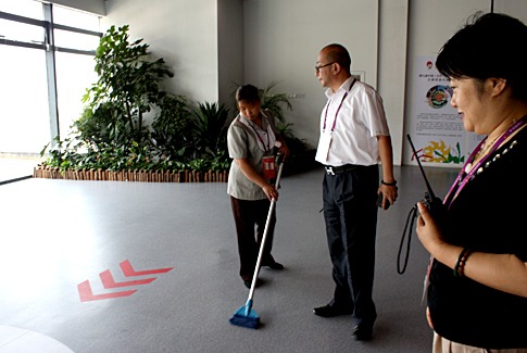某种意义上讲,均豪工作组就像是主展馆运营团队中的一个大管家,统筹协调各个组间的配合、沟通,确保整体运营的流畅。在每天的工作中,均豪工作组会实时观察馆内的情况,装饰性植物摆放的位置、展示性花卉的健康状况、展示墙的照明彩灯、景观池中的金鱼喂食、志愿者的站姿仪容,甚至地面粘贴的引导标识翘起这样的小细节,都不会被遗漏掉。这样精益求精的工作方式,在均豪工作组的积极带动、悉心督导之下,已经在各个工作组中形成了一种精细化的工作氛围,这个在初期并无默契的“临时组合”也成功提升成为一支真正意义上的专业服务团队。
