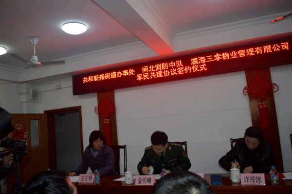 日前,为响应“积极开展社区精神文明建设工作”号召,上海均豪公司与上海市闸北区消防中队正式签署军民消防共建协议,共同实现“消防共抓,安全共建,活动共商,和谐共创”的社区建设新局面。