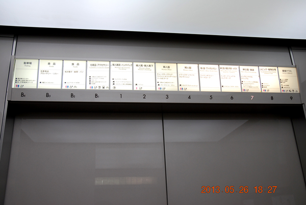 图5 电梯门上方标有各楼层销售商品的标签 |