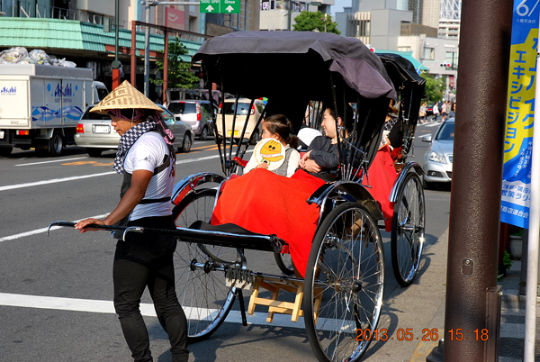 来日本之前听说东京街头有游览人力车服务,无意之中还真看到了,游览人力车有二个近一人高的大轮子,一色儿黑色,身着日本特色服饰的小伙子,热情招揽着游客,有序不乱;街头偶有施工情况,现场全部围挡起来,并有提醒路人注意的告文,行人经过,还有声音提醒;由于我遗忘了领带,所以抽空到商场买了几条,一来可以自用,二来可以送朋友,在商场电梯门上沿,各楼层销售商品清晰可见,我很方便找到要去的楼层,减少了询问和查找的时间。 |