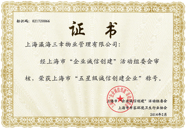 日前,上海瀛海三幸公司获得由上海市“企业诚信创建”活动组委会及上海市容环境卫生行业协会共同颁发的“五星级诚信创建企业”荣誉证书,这也是上海瀛海三幸公司继2013年获得“四星级诚信创建企业”称号以来,连续第二年蝉联该项殊荣,并且更上一层楼,成功将诚信等级升级为最高荣誉“五星”。