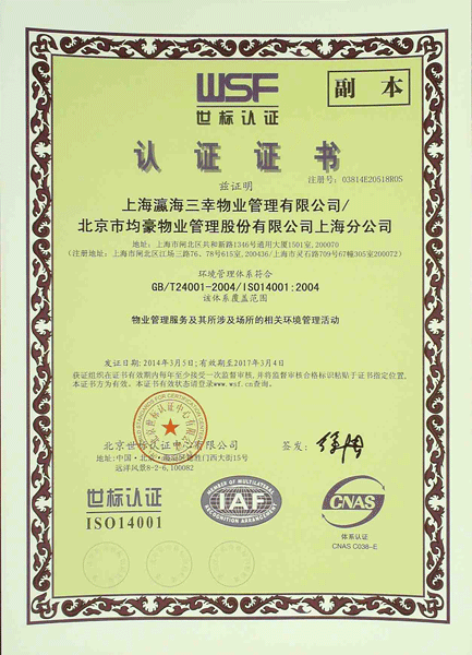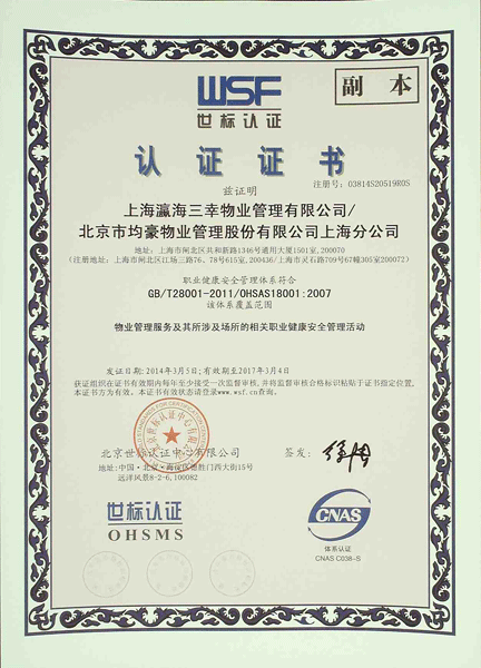 日前,北京世标认证中心有限公司专家组对上海均豪公司ISO14001:2004环境管理体系和OHSAS18001:2007职业健康安全管理体系开展了为期三天的审核认证。经过专业细致的审核,专家组认为:上海均豪公司在环境、职业健康安全管理方面进行了规范、系统的规划和切实有效的实施,符合ISO14001环境管理体系和OHSAS18001职业健康安全管理体系的要求,一致同意认证审核通过。