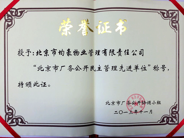座谈会上,汪涛主席对均豪企业工会组织的建设思路给予高度评价,并代北京市厂务公开协调小组授予均豪企业“北京市厂务公开民主管理先进单位”、“北京市厂务公开民主管理示范单位”荣誉称号。