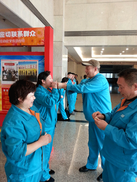 | 图1 青岛海关项目部,男士们亲自为女士们奉上糖果以表节日祝福 |