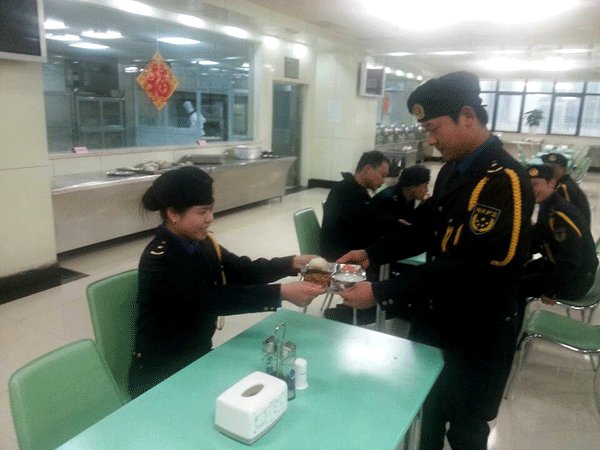 | 图2 青岛市检察院项目为在一线工作的女员工送上一杯热茶 | 图3 青岛海关项目部男员工为女员工端去一份爱心午餐 |