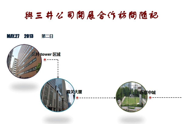 在这里,电梯展示给我们的另一个信息是,他们的建筑设施成品保护工作做得非常到位。对于闲置的设备、设施,他们会采取保护措施,例如在电梯中,使用一种软包材料将表面覆盖住,当电梯临时启用时,可以直接摘下来,非常方便,并且能够反复使用。相比之下,在我们国内,我看到的大多数电梯都是在外面加一层木板,稍微好一些的会用有机玻璃代替木板,像日本这里使用软包材料的,还未在国内见到过。 仅仅是在三井本馆建筑内外的简短参观,我就看到了日本国内设施管理的高度专业化,体现在人们日常的生活中,就在身边随处可见的地方,即便大部分都是很细微的措施和环节,也正是这样精细化的管理、人性化的服务理念,使得“专业”无处不在。 之后,三井不动产的大林社长和小林科长与我们一行人进行了亲切会见。在多功能会议室里,小林科长通过PPT为远道而来的我们展示了三井集团开发的东京中城、霞关大厦、日本桥三井Tower等项目概况,在小林科长详细的介绍中,我们看到了日本三井集团在设施管理、地产经营、环境规划等专业领域的先进运作模式和管理理念。而其中的霞关大厦和东京中城就是下午我们即将去参观的地方。 |