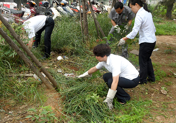 上午10点,武汉均豪同仁们戴上橡胶手套,拿起铁锹,来到公司所辖光谷创意产业基地项目园区内,与保洁人员一起,身体力行开展户外环境清洁工作。大家分工协作,除杂草、清理废弃物、分类集中,炎热高温并没有融化同仁们的热情,反而点燃了大家团结劳动的斗志。望着这些为美好环境而辛勤劳作的均豪同仁们,园区内经过的业主纷纷投以真挚的鼓励与致谢的微笑。武汉均豪同仁们在维护环境的同时,用汗水诠释着“爱护环境,人人有责”的平凡美德,用不畏高温的精神呼吁着,“共建清洁园区,心动不如行动”。