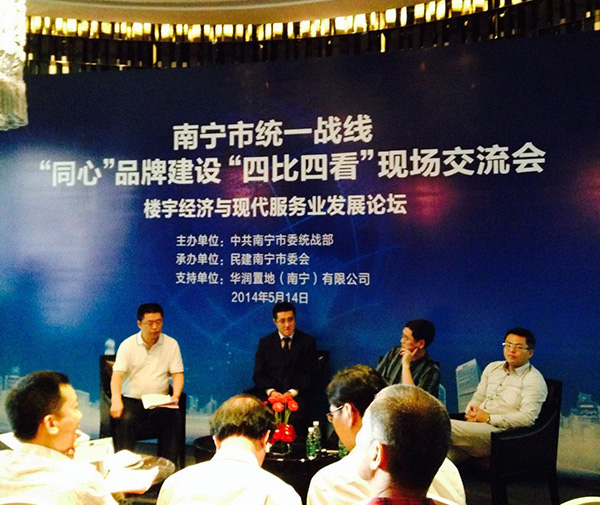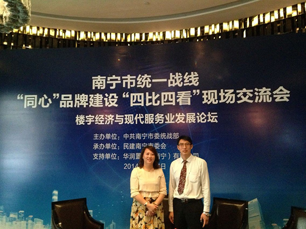 2014年5月4日,由中共南宁市委统战部主办,民建南宁市委会承办的主题为“楼宇经济与现代服务业发展”的南宁市统一战线 “同心”品牌建设“四比四看”现场交流会顺利召开。会议邀请到中共南宁市委常委统战部部长容康杜、市议政调研委会员会副主任张国宏等政府官员、专家学者以及房地产企业代表共同参与,广西均豪公司总经理赵伟出席会议。