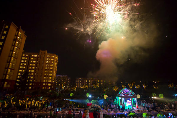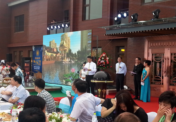18时整,在主持的人宏声念诵中,隆重、优雅的“盛景鉴功名”音乐会正式开始。山东博大房地产开发有限公司董事长张文恒先生、山东博大房地产开发有限公司总经理冯昭城先生、山东省均豪物业公司总经理张广仁先生和盛景澜庭业主代表张玉霞女士共同启动水晶球,标志着盛景澜庭正式开盘。