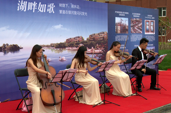 2014年6月21日,清凉的夏至日翩然而至。位于山东省淄博市孝妇河畔的盛景澜庭园区内鲜花盛放,琴瑟氤氲。当晚16时30分左右,受邀而来的业主、媒体朋友等嘉宾们陆续踏上盛景澜庭用红毯精心铺就的浪漫之路,在欣赏优雅湖区音乐会的同时,共同见证盛景澜庭的优雅开盘仪式,一起品鉴这座“微能耗”的生态住宅,共享优雅音乐盛宴。