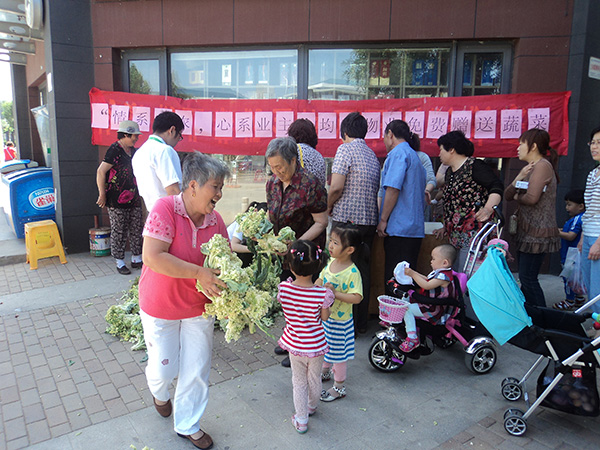 活动当天,小区内俨然成为了一个热闹得便民市集,吸引了大批业主踊跃参与,大家热情高涨争相领取放心蔬菜,近三个小时的时间三千斤菜花全部发放一空。过程中,均豪同仁们在现场耐心疏导,并为业主一一登记,发放活动有条不紊的进行。业主们收到绿色蔬菜,个个喜笑颜开。