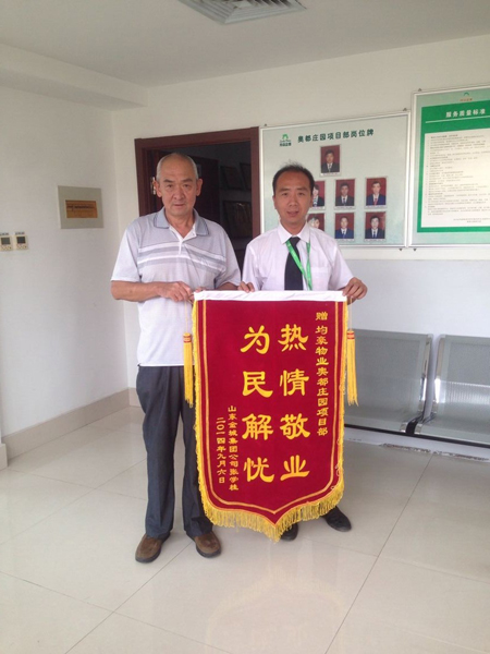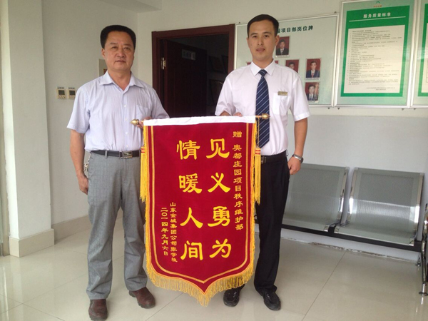 日前,山东均豪奥都庄园项目部收到两面锦旗和一封感谢信,“热情敬业,为民解忧”,“见义勇为,情暖人间”,字里行间流露着说不尽的感谢。