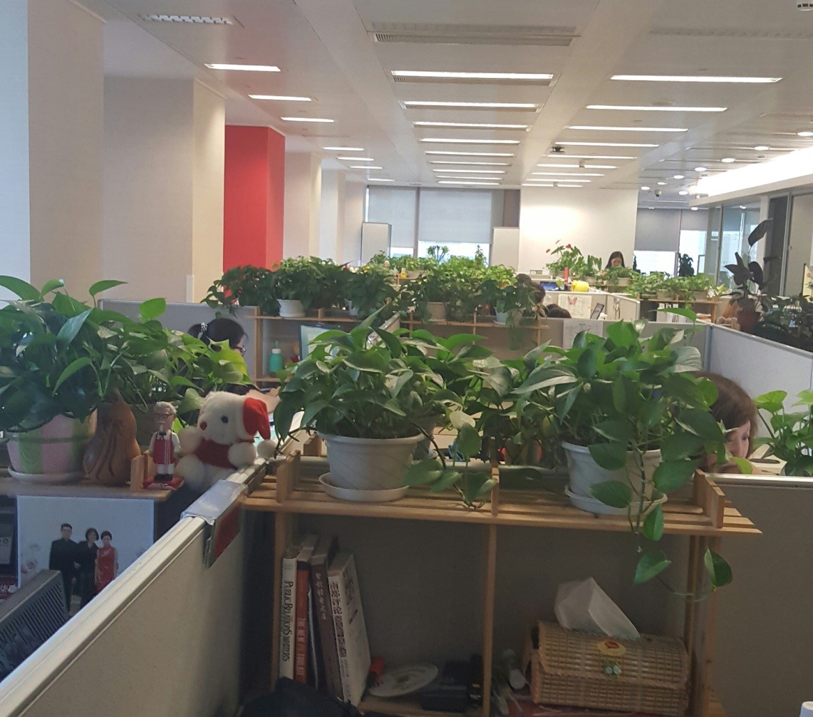 3、在费用限制的情况下,让员工满意,是每个FM工作者最大的挑战,要长袖善舞,同时也是带着镣铐起舞。如百胜餐饮总部(下图所示):公司购买木架及价格实惠的绿萝等观叶植物,让保洁阿姨定时浇水即可,既美化、净化了环境,让办公室绿意盎然,又节约的开支,省了绿化租赁摆花费用。 (会议室的观叶绿植,配个白色小框,点睛之笔)