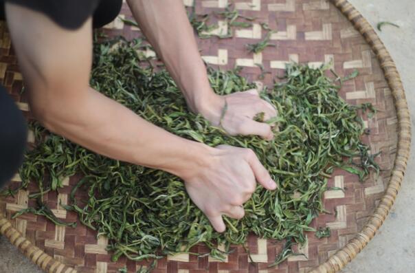 揉捻——在手工制茶中,揉捻程度的轻重对成茶品质有重要的影响。普洱茶的揉茶工艺的意义在于将松散的茶叶卷曲成条索,并破裂细胞壁以利于冲泡中茶汁释出。