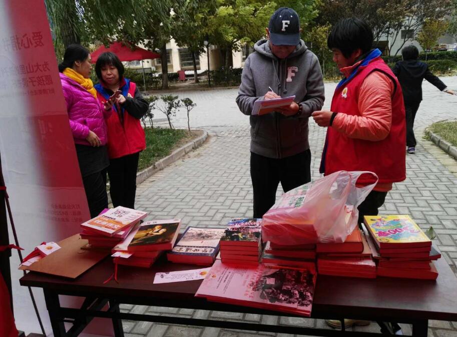 志愿者们积极热情地向社区居民解释活动的内容和目的。几乎所有的善心人士都表达出有捐书的意愿。