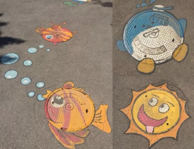 在铁制的井盖上绘画不像在纸上涂画,有一定难度,又找不到合适的模具。大家商讨之下,就有员工自告奋勇主动提出担任“绘画师”。为了“试水”,首作选在开发商和业主经过的小区主干道以及售楼处附近的井盖上。没想到这位员工绘制出来的效果非常好,颜色鲜艳,图案也很生动。结果,小区内的业主和开发商反响非常好,还有一些来看房买房的客人,看到之后也对小区物业的人性化管理赞不绝口。
