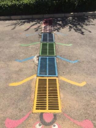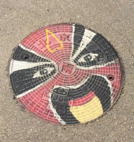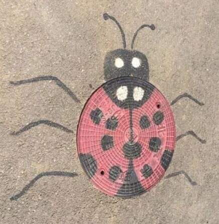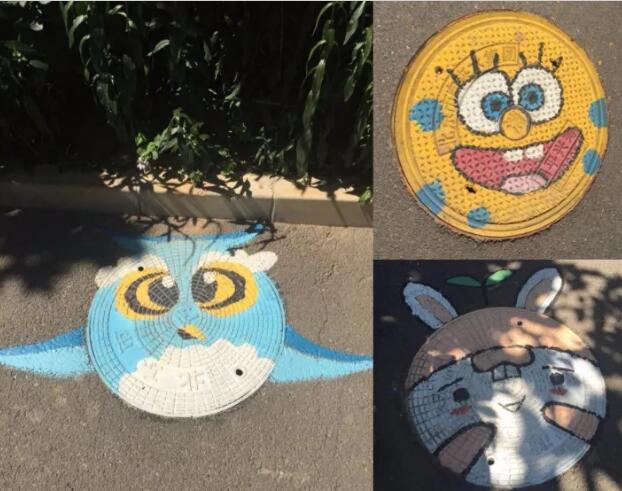 北京莱茵山项目经理在一个下雨天检查小区设备设施时,发现下水道井盖被落叶盖上了。在清理的时候发现小区内各种用途的井盖非常多,分布也不规整,这个情景启发了项目经理,可不可以在井盖上做些文章,绘制一些充满童趣的画面,来点缀园区景色?