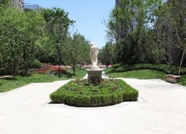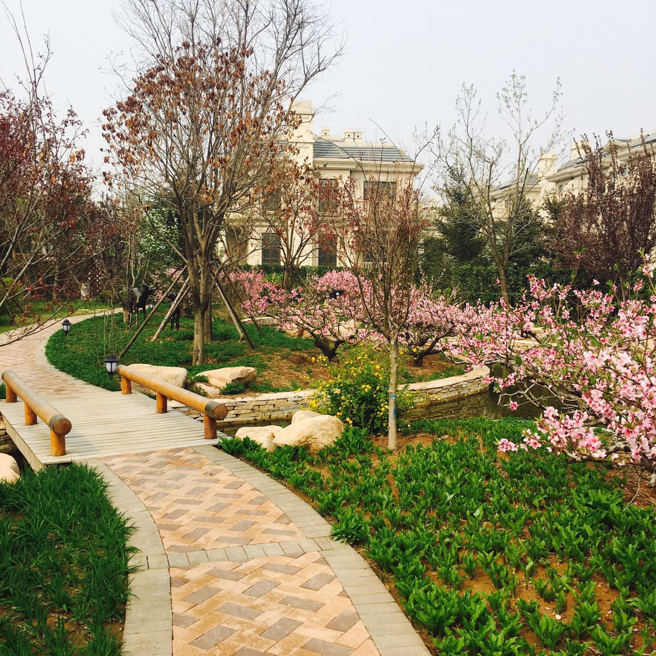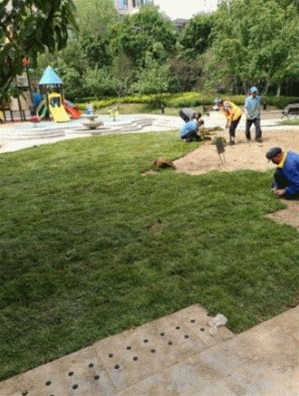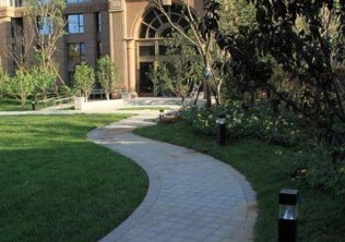 在有高差坡度的园区造型位置,在下延增加草坪铺设,起到美化的同时,减少浇灌泥水流到甬道情况。