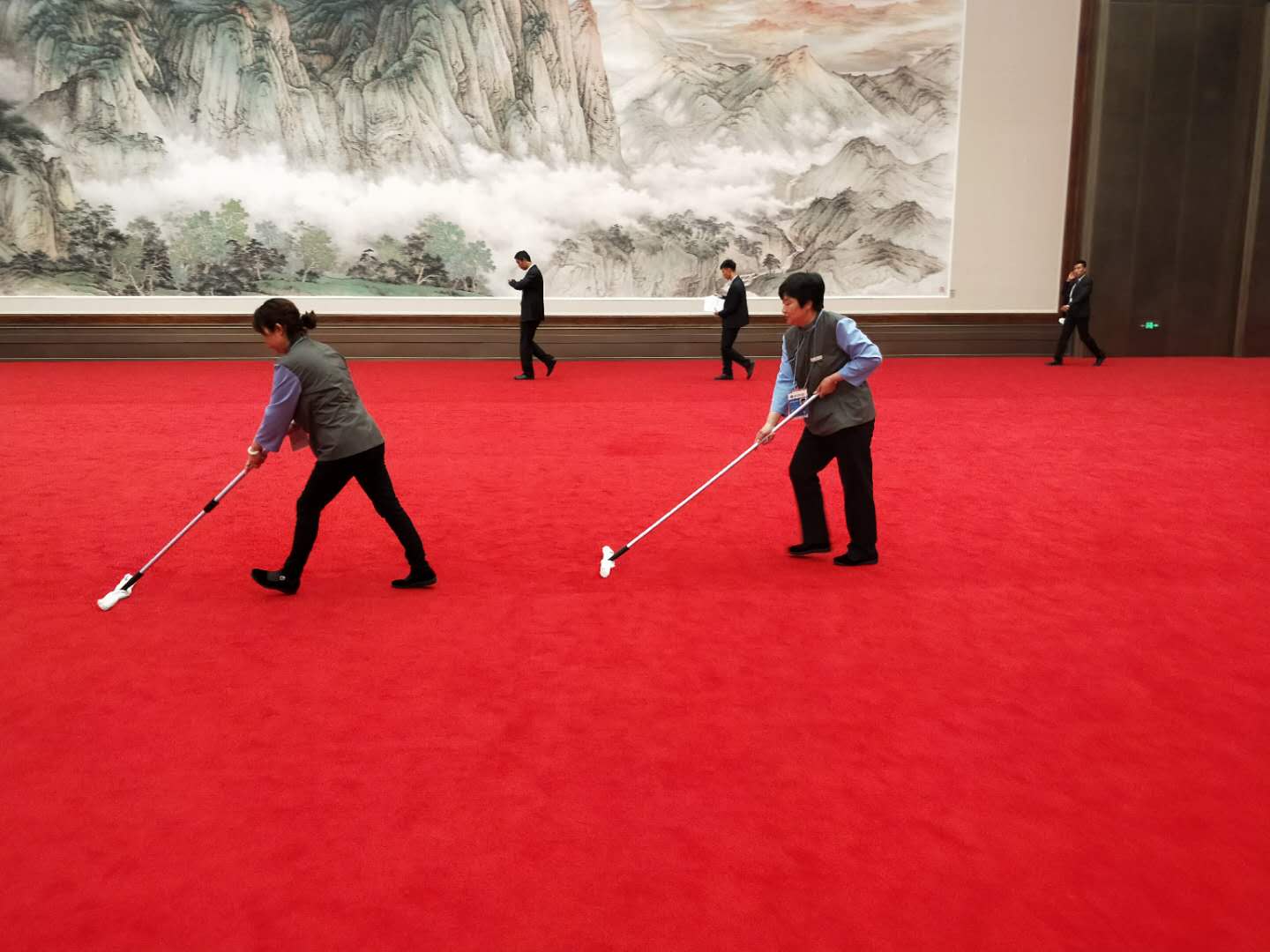 4月20日,青岛公用的保洁及管事团队正式进驻国际会议中心,公司选派了具有五星级酒店管理经验的管理人员带领整个队伍服务峰会,保洁团队主要负责会议中心主会场56000平方米场馆的保洁工作,从精开荒到精维护再到提高服务品质,有别于以往的物业服务,为了使品质与国际会议匹配,均豪的保洁清洁坚决不使用任何清洁剂和化学产品,以防化学味道影响现场品质,所有员工采用纯手工清洁,真正打造手摸无灰、眼看无渍、鼻嗅无味的良好环境。