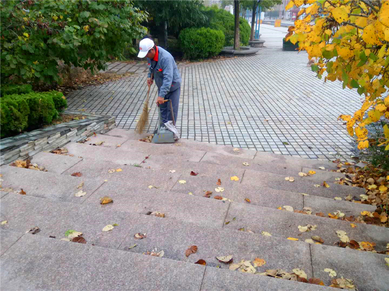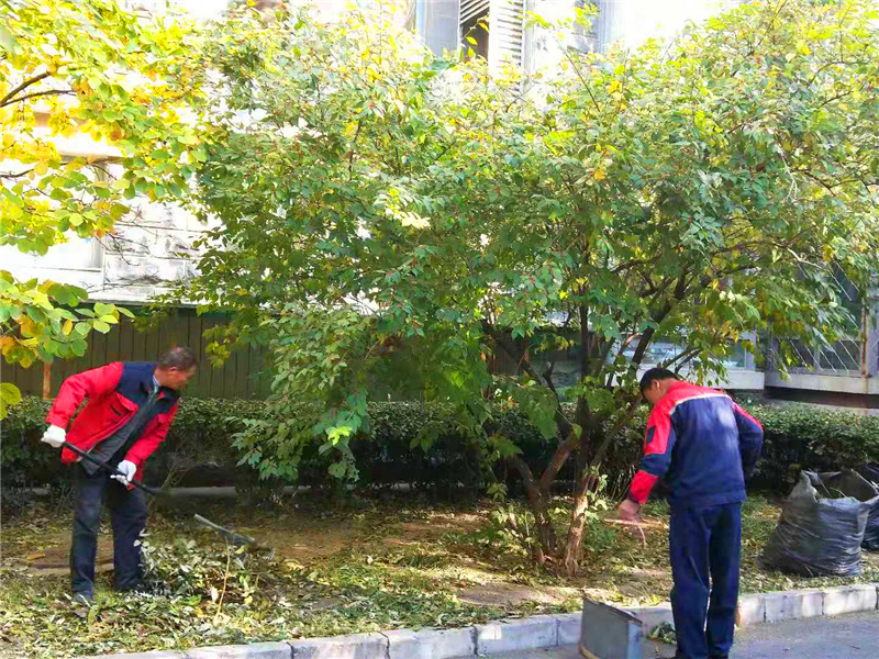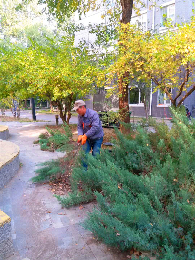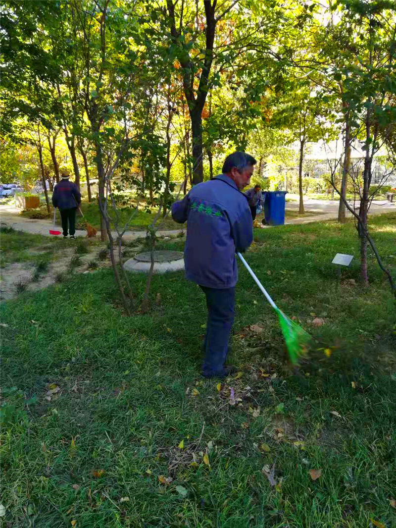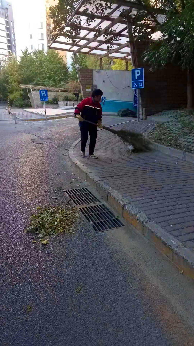 国典华园清理落叶,美化小区