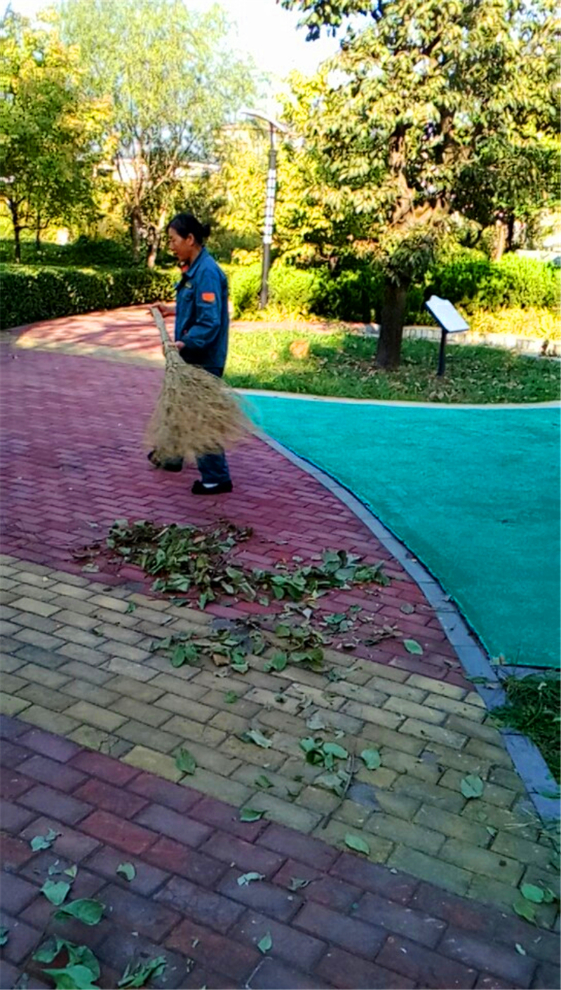 宝星园的保洁大姐清理落叶