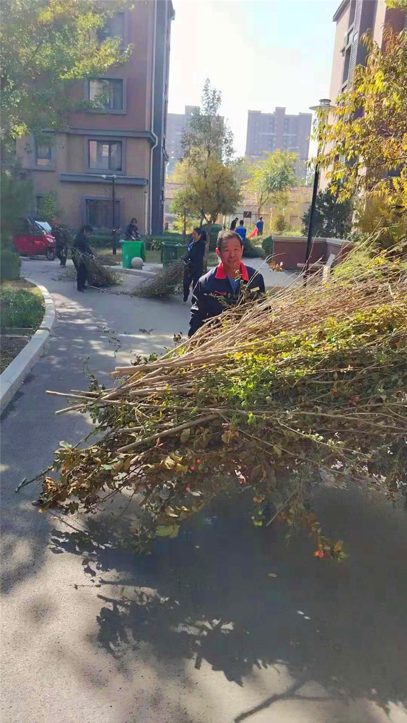 理想城清理小区绿化环境,绿植防护过冬