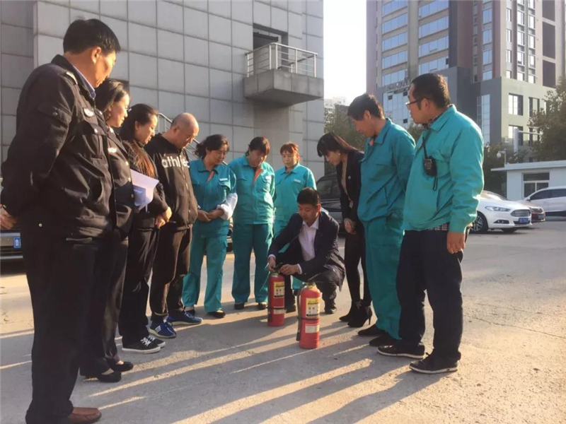 在演习过程中培训讲师强调了干粉灭火器的使用技巧和注意事项,各部门人员均轮流操作,熟练掌握了灭火器的使用方法。
