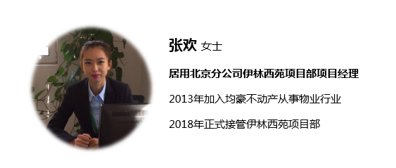 但作为项目经理的她,在工作中却是另一种形象。“明净清澈”是张欢留给人的第一印象。同事们对她的评价与她的外在形成了反差对比:强大、有魄力、自律。很难把这样一个纤瘦、年轻的女孩与物业管理公司的项目经理一职联想到一起。2013年,张欢以客服部楼管员的身份正式加入均豪大家庭, 随后通过自身的历练与公司的培养,她先后从事项目行政、财务管理和客服经理等工作,在此期间张欢在工作上的出色表现和谦逊的工作态度赢得了领导的信任和同事的好评。2018年4月,她正式开始接手伊林西苑的项目管理工作,担任项目经理职务。