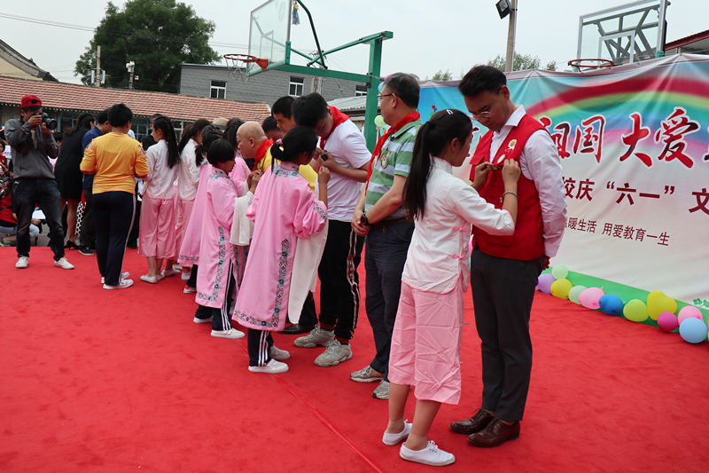 北京灯火公益基金会的形象大使、中央电视台《少年中国行》节目主持人张涛先生亲临活动现场,为北京光爱学校的孩子们带去了夏季急需的拖鞋等生活用品,以及两个节日礼物——特大号生日蛋糕,并和大家一同与“白菜爸爸”石校长和孩子们共同度过了一个欢快的六一儿童节。