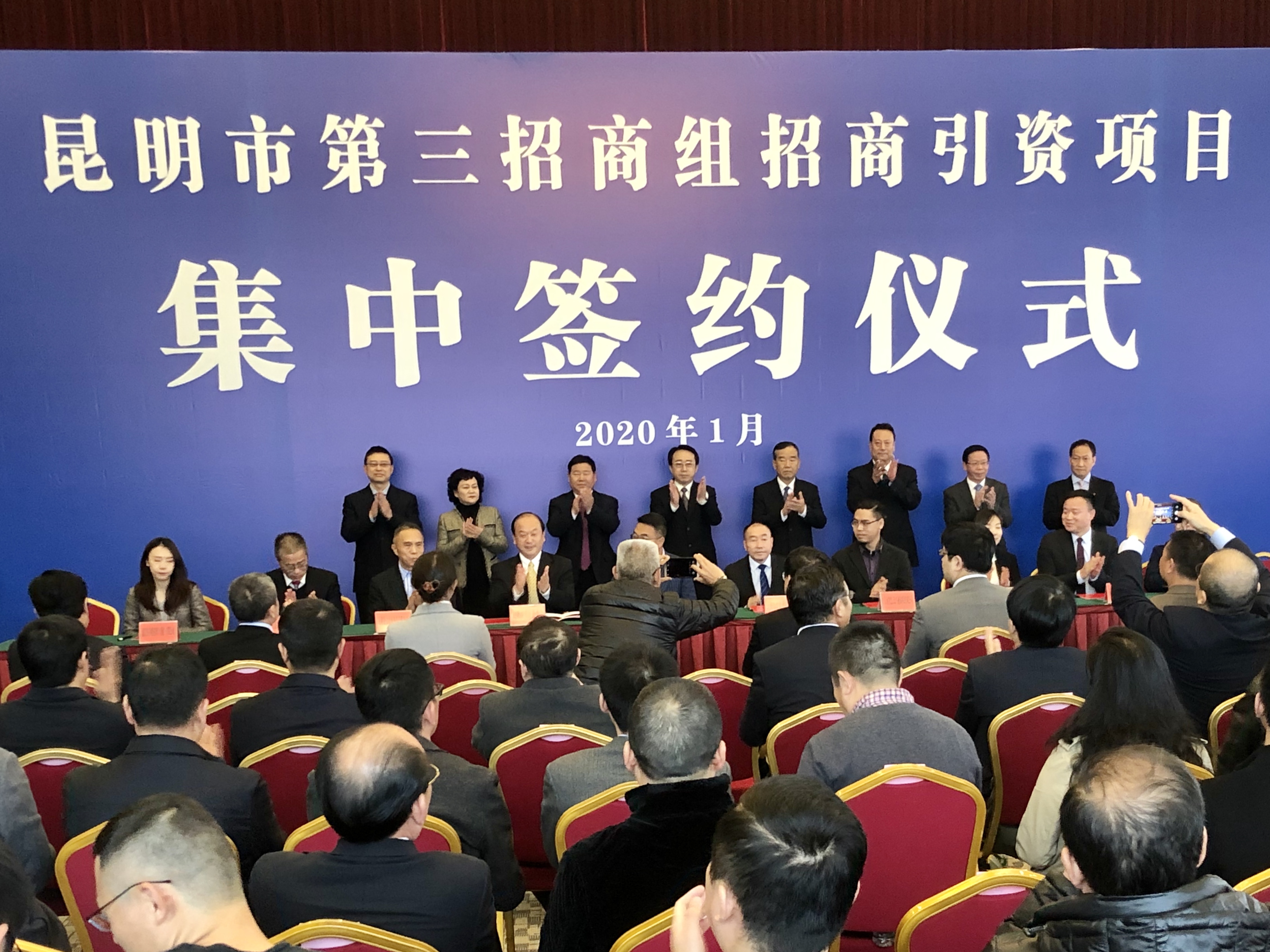 2020年1月12日下午,为贯彻落实市委十一届八次全会精神,助推一季度招商引资工作“开门红”,昆明市第三招商组招商合作恳谈会及招商引资项目集中签约仪式在昆明会堂举行,均豪集团作为园区战略合作企业应邀出席。