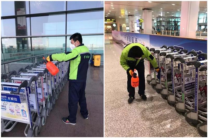 天津滨海国际机场作为京津冀区域重要的航空枢纽,2019年出入境旅客吞吐量突破300万人次。随着返程高峰临近,日客流量不断增大。机场手推车服务因旅客使用频繁、传染几率最大,是机场防控疫情的重要环节。为此,天津的均豪人自疫情爆发以来,勇敢“逆行”每一名机场服务员工始终坚守在各自的岗位上。