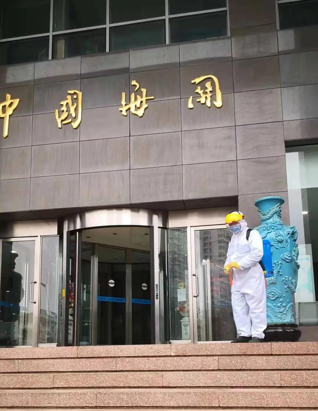 青岛海关应急小组门前消杀