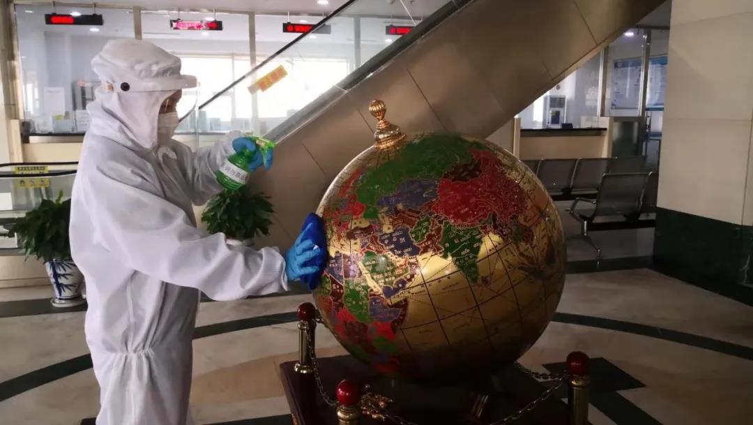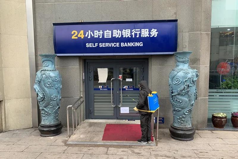 青岛交通银行应急小组门前消杀