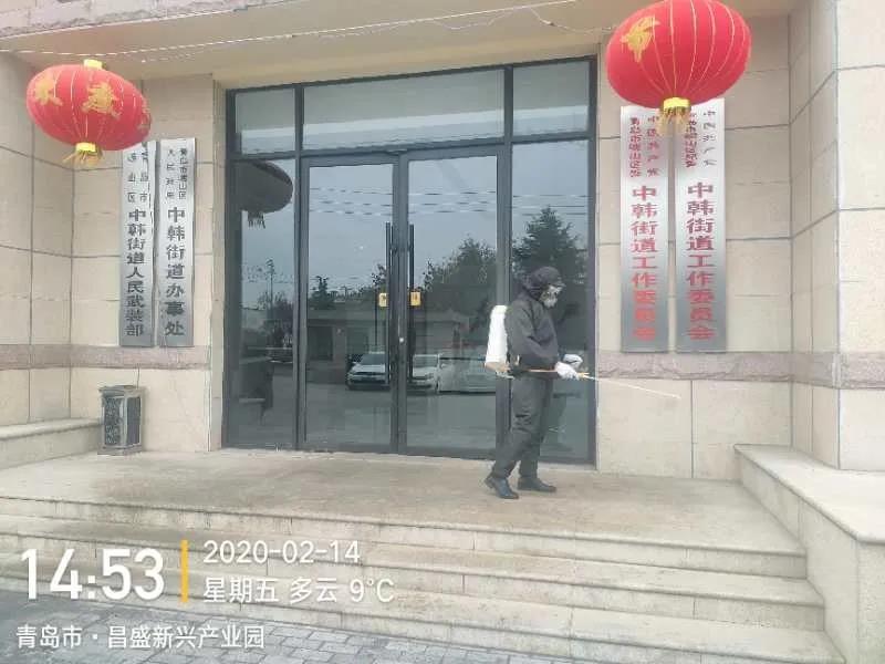 青岛昌盛产业园应急小组门前消杀