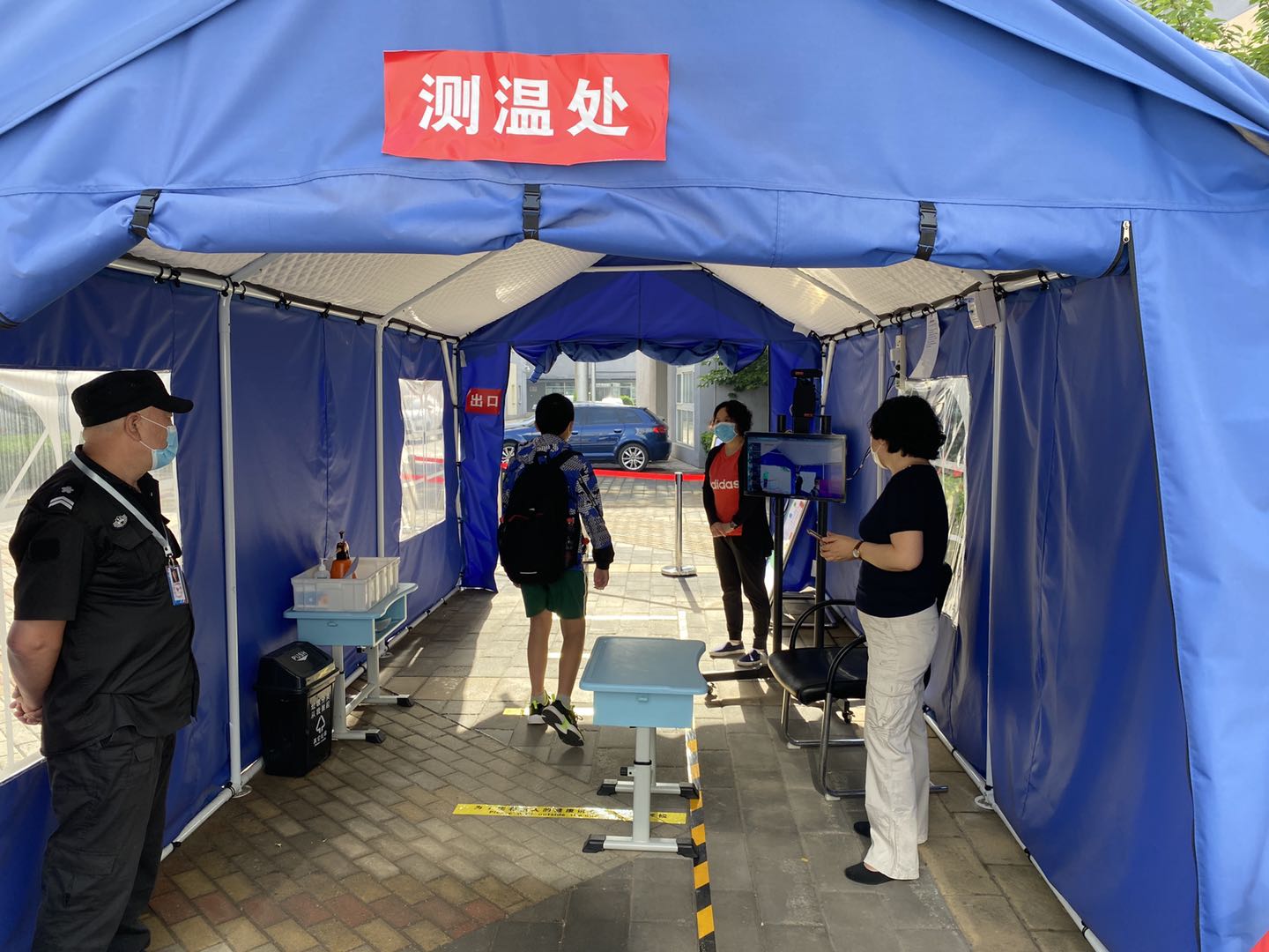 师生入校一律核验身份、检测体温,发热人员一律不得进入学校。均豪协助学校在校门附近设置一米线、临时观察点等措施,分散校门口待检人员。严格控制访客,校外无关人员一律不准进校,校内一律不准会客。外来人员确需入校的,学校则安排专人陪同,做好登记和防护措施。