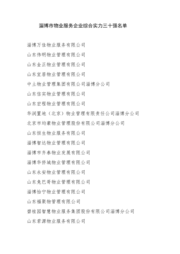 近日,淄博市物业服务企业综合实力三十强评选结果公示,北京市均豪物业管理股份有限公司淄博分公司挺进十强。
