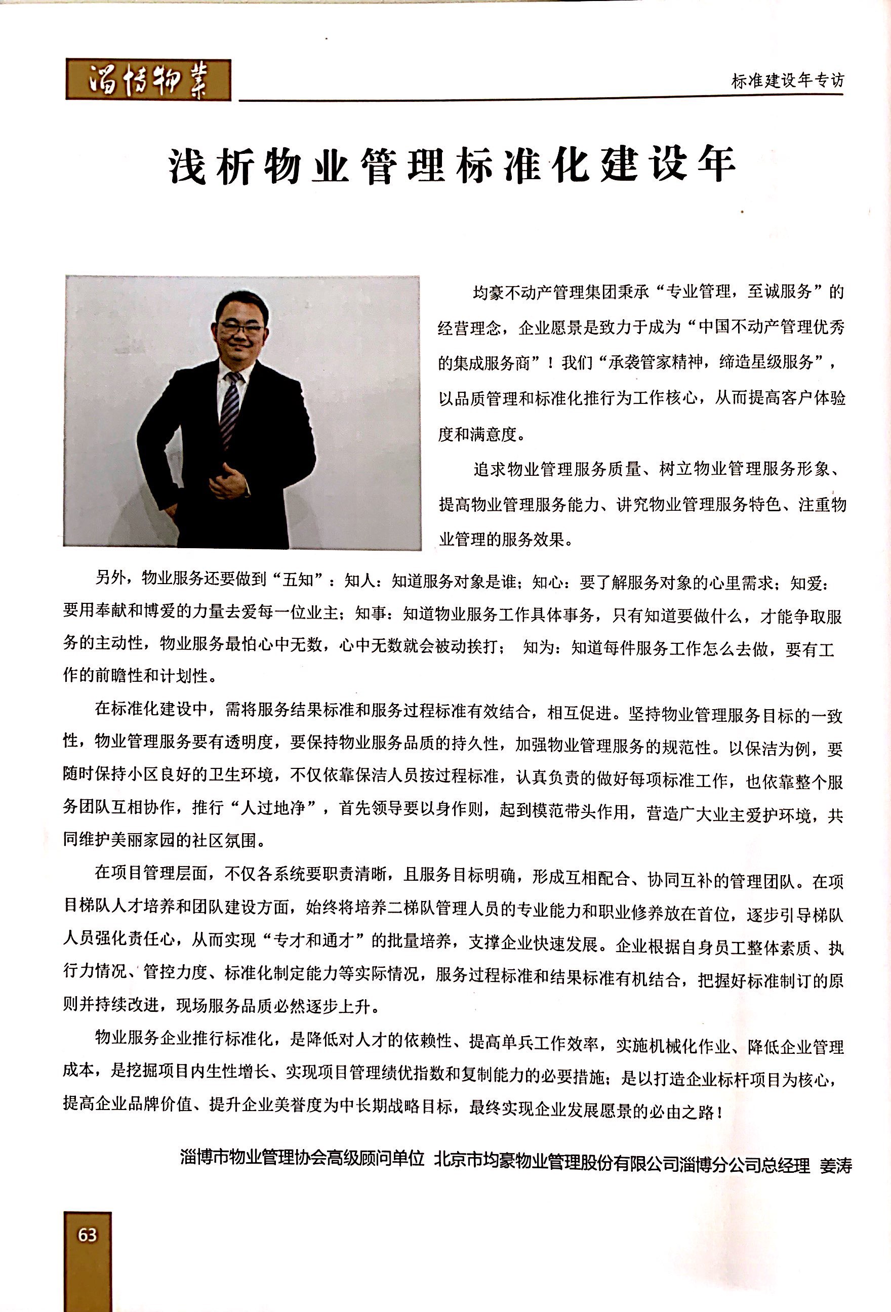 2019年度业主满意度测评,淄博均豪所辖9个项目平均业主满意度高达93.87%,其中上湖御园高达98%。上湖御园还荣获2018-2020年度淄博市物业管理示范项目。东岳国际荣获淄博市物业协会颁发的2019年度五星级优秀项目。淄博均豪总经理姜涛先生,还荣获2019年度淄博市物业服务行业诚信优秀企业家荣誉称号。
