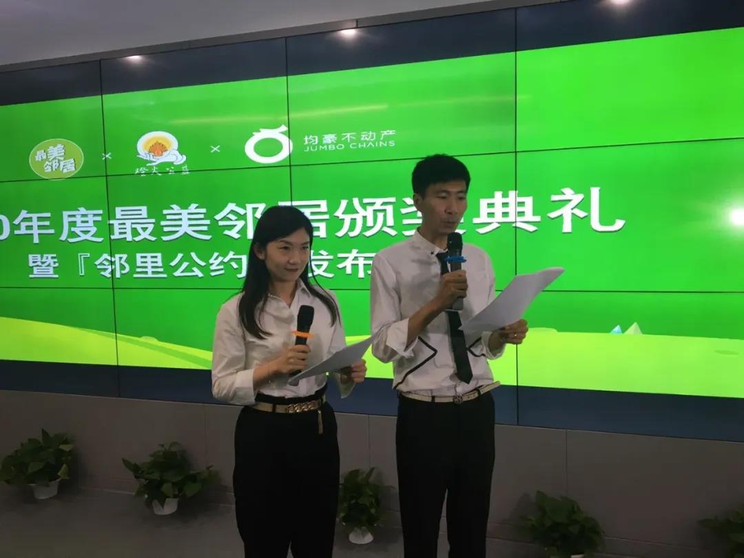 在开播42年的央视《新闻联播》刚刚重磅改版之际,最美邻居颁奖典礼也巧妙地运用联播形式进行了开场。两位主播均是来自均豪集团的员工,有板有眼的播报着实让广大网友眼前一亮。
