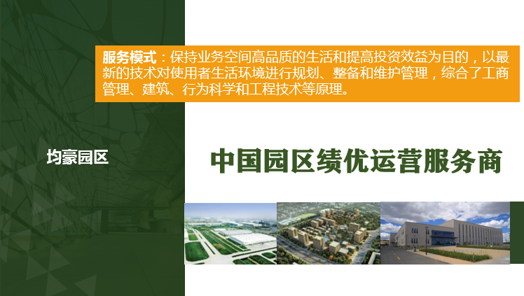 均豪园区管理不再是简单的基础性物业管理,而是以保持业务空间高品质的生活和提高投资效益为目的,以最新的技术对使用者生活环境进行规划、整备和维护管理,综合了工商管理、建筑、行为科学和工程技术等原理的管理模式。