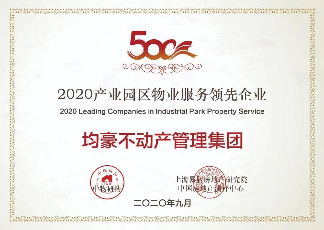 2019年,在第六届中国产业园区创新发展高峰论坛上,均豪荣获“中国产业园区领军企业”。同年,又被京东物流评为“2019年度优秀服务供应商”。今年,在刚刚结束的2020物业服务企业综合实力和品牌价值测评成果发布会上,均豪又斩获 “2020产业园区物业服务领先企业”奖。