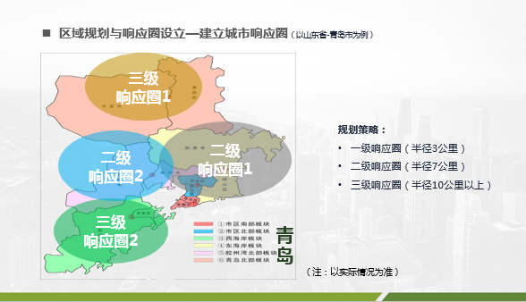 以山东青岛为例,均豪按照国家的战略,根据当前经济形势(宏观经济的运行状况和走向),建立了区域规划与响应圈。又根据城市排名和均豪战略布局,建立了城市响应圈。一级响应圈(半径3公里),二级响应圈(半径7公里),三级响应圈(半径10公里以上)。